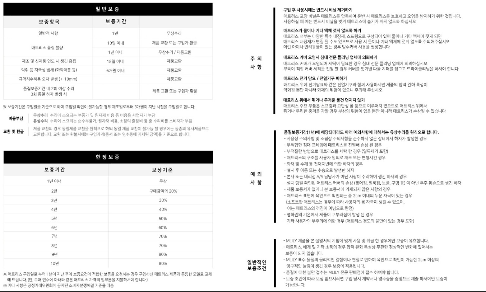 Q. 매트리스 보증기간과 보상기준은 어떻게 되나요?